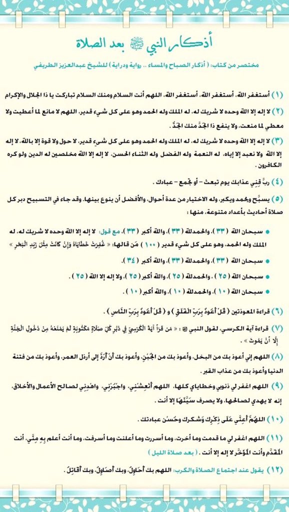 ك ن اشة الفوائد A Twitter احفظها أذكار الصباح والمساء أذكار بعد الصلاة أذكار النوم أذكار متفرقة لشيخ عبدالعزيز الطريفي