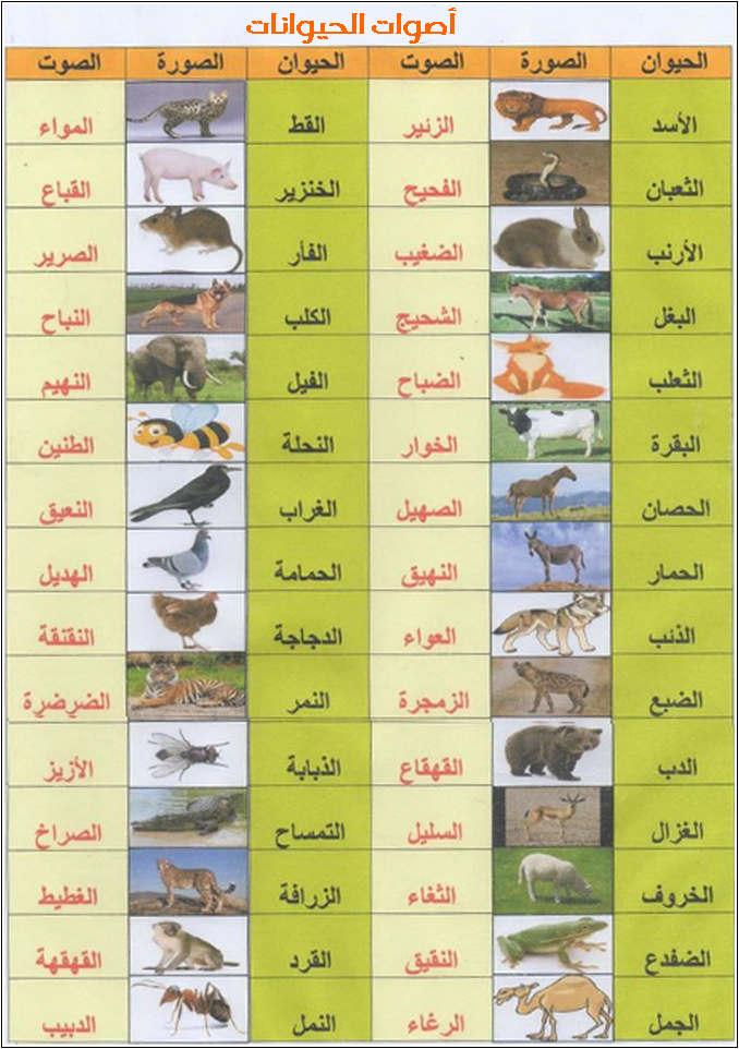 أصوات الحيوانات باللغة العربية للمعاينة و التحميل