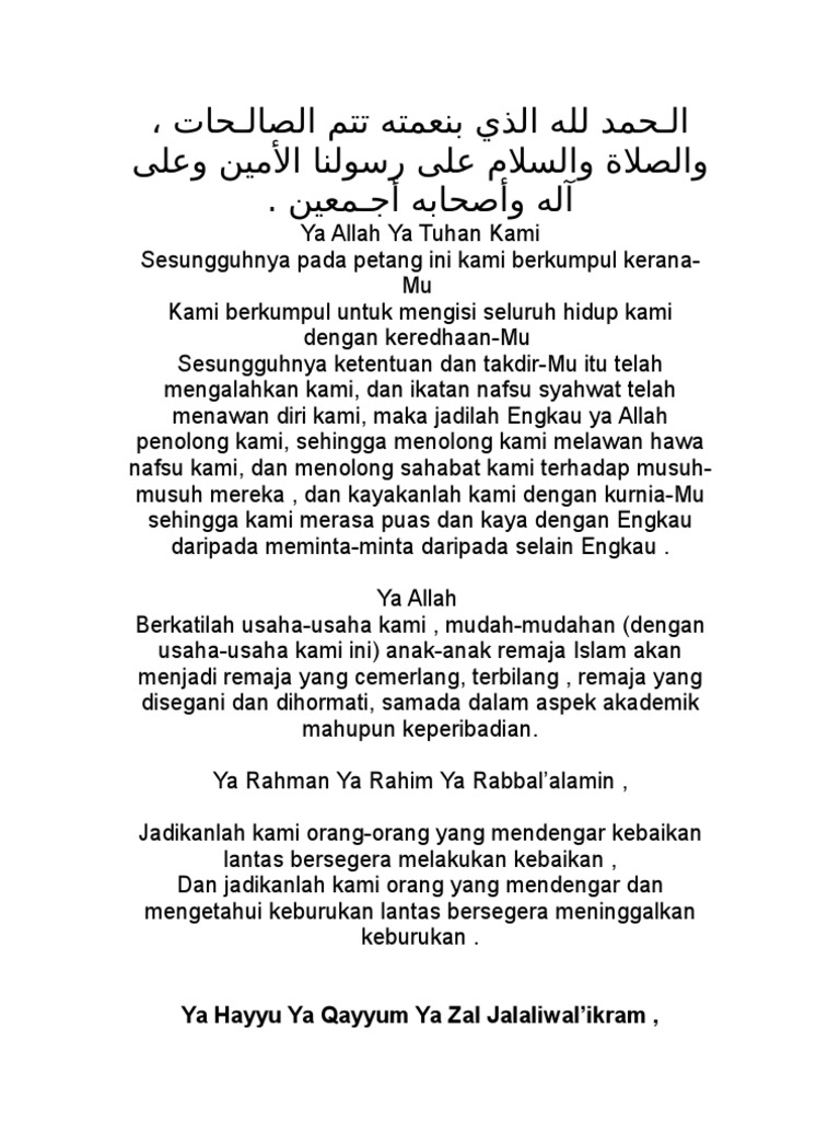 Doa Majlis Solat Hajat