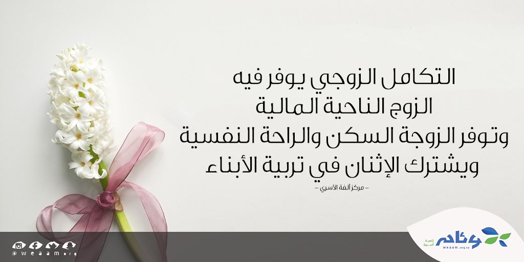 وئام للتنمية الأسرية Pa Twitter التكامل الزوجي يوفر فيه الزوج الناحية المالية وتوفر الزوجة السكن والراحة النفسية ويشترك الإثنان في تربية الأبناء