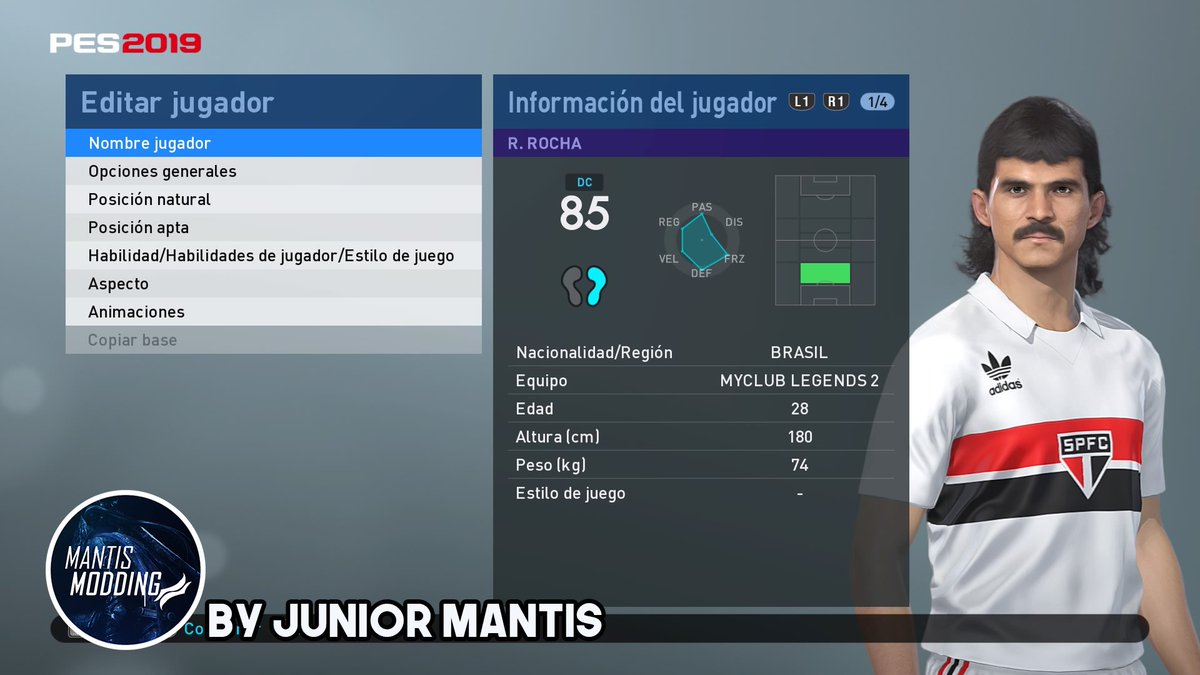 R Rocha Face Stats Officielle Pes 2019 Ou 2018 Bresil Legends Youtube